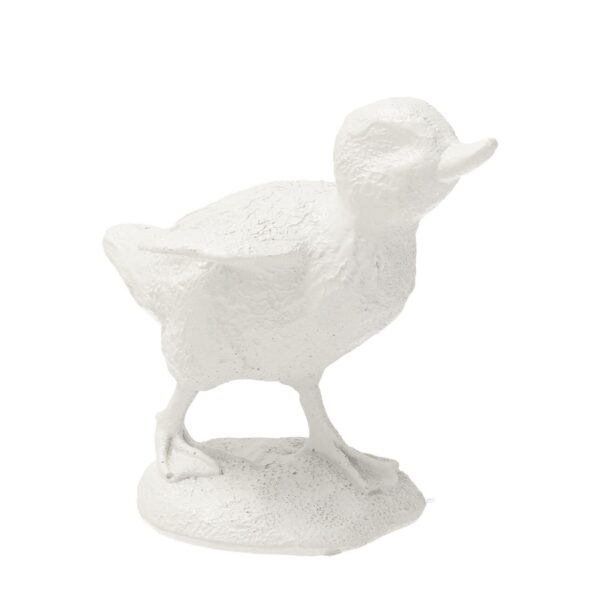 Śnieżnobiała figurka stojąca kaczuszka to uroczy dekoracyjny element, który wspaniale zaprezentuje się w Twoim wnętrzu. Ta subtelna figurka przedstawiająca pisklę jest wykonana z lekkiego, ale trwałego polistyrenu, co czyni ją łatwą do przenoszenia i aranżowania według własnych preferencji.