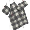 Komplet kuchenny to praktyczna rzecz w każdej kuchni, niezbędna przy przygotowywaniu posiłków w domu lub na grillu. Ułatwia przenoszenie gorących naczyń i chroni odzież przed zabrudzeniem. Kolorowe tkaniny nadają dodatkowej wartości dekoracyjnej. W skład kompletu wchodzi: łapacz (21×21 cm), rękawica (17×35 cm) oraz fartuch z kieszenią (50×70 cm).