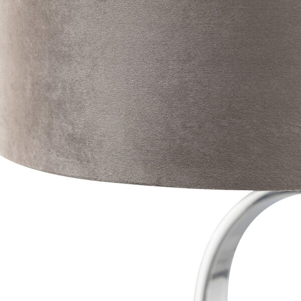 Klasyczna i elegancka lampa podłogowa, podstawa wykonana z metalu.Posiada klosz wykonany z szaro- brązowej tkaniny o aksamitnym wykończeniu. Piękny i prosty deisgn lampy przykuwa uwagę.