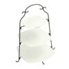 Stylowa, trzypoziomowa patera w stylu minimalistycznym wzbogacona o subtelne zdobienia. Białe, kwadratowe talerze osadzone na stylowym, czarnym stojaku – nóżkach o finezyjnych kształcie, to propozycja dla osób ceniących efektowne podawanie dań. To niezwykle praktyczne, a zarazem eleganckie akcesorium kuchenne, sprawdzi się podczas rodzinnych uroczystości oraz spotkań z przyjaciółmi.