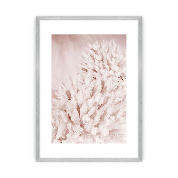 Elegancki plakat z piękną rafą koralową w pastelowym, różowym kolorze. Plakat został oprawiony w białą, wbudowaną ramę z passe partout.