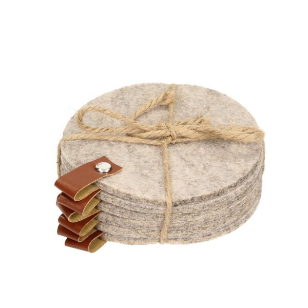 Komplet podkładek dekoracyjnych wykonanych z filcu z uchwytem w beżowym kolorze.
