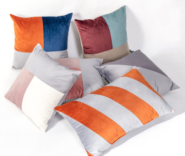 Unikatowa poduszka patchwork z miękkiego, eleganckiego welwetu. Oryginalny charakter nadają jej modne łączenia w trzech kolorach. Doskonale sprawdzi się zarówno w aranżacjach urządzonych w stylu nowoczesnym, jak i rustykalnym. Miękka i przyjemna w dotyku poduszka dekoracyjna będzie wspaniałym uzupełnieniem każdej sofy, łóżka czy fotela.