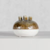 Osobliwy, a zarazem uroczy wazon kamionkowy. Pięknie wyeksponuje drobne rośliny, tworząc oryginalną dekorację wnętrza. Ten przykuwający uwagę, interesujący dodatek wzbogacony został subtelnym połączeniem bieli i brązu.